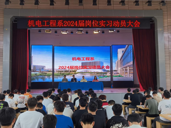 为扎实有效做好2024届学生岗位实习和安全管理工作,4月18日,机电工程系召开2024届岗位实习动员大会,系党总支书记王建军、主任王利卿及500余名2024届毕业生参加。会议由系党总支副书记王远志主持。