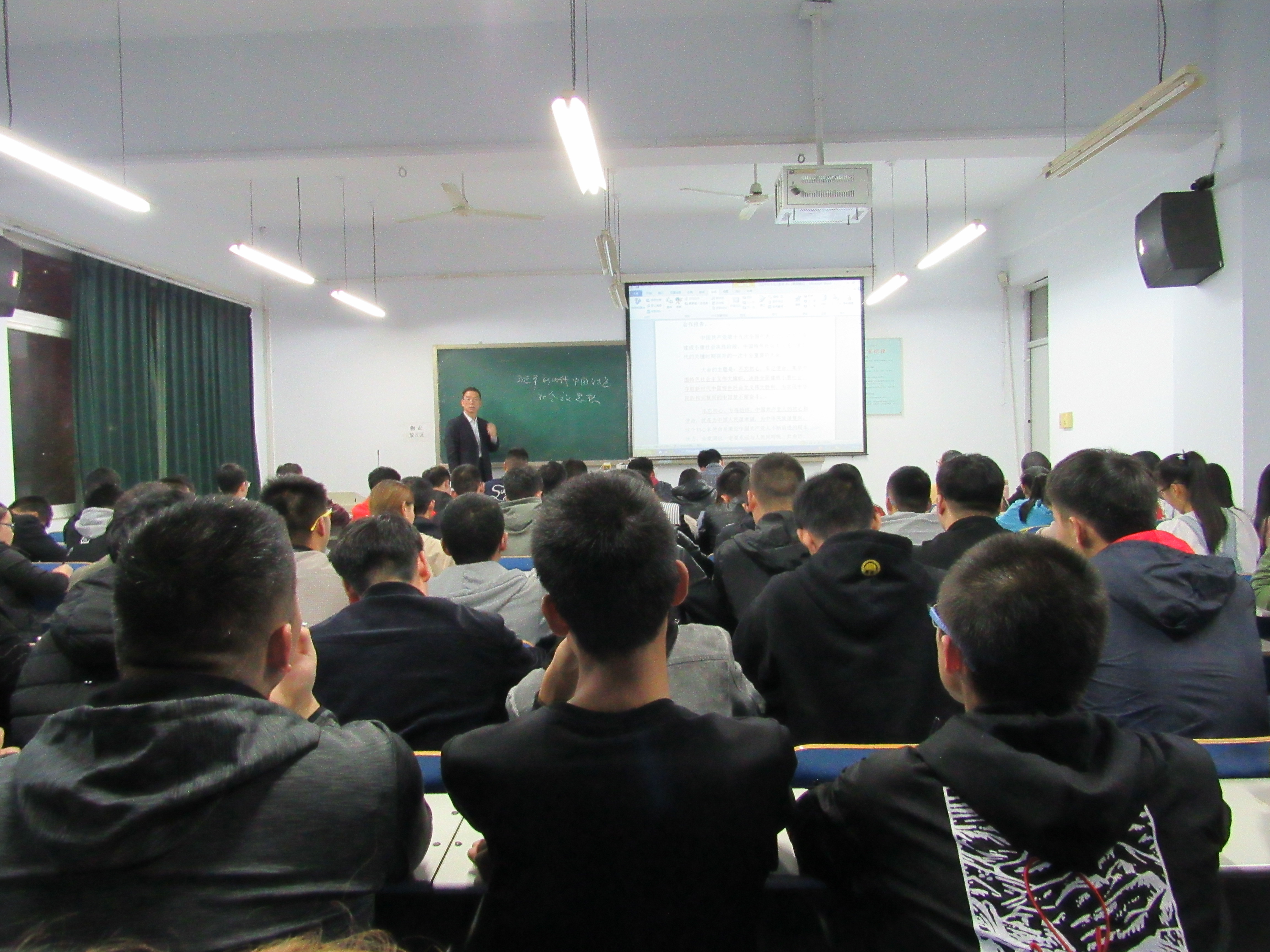 通过此次党课,激发了同学们学习十九大精神的热情,坚定了同学们紧跟中国共产党步伐的决心。