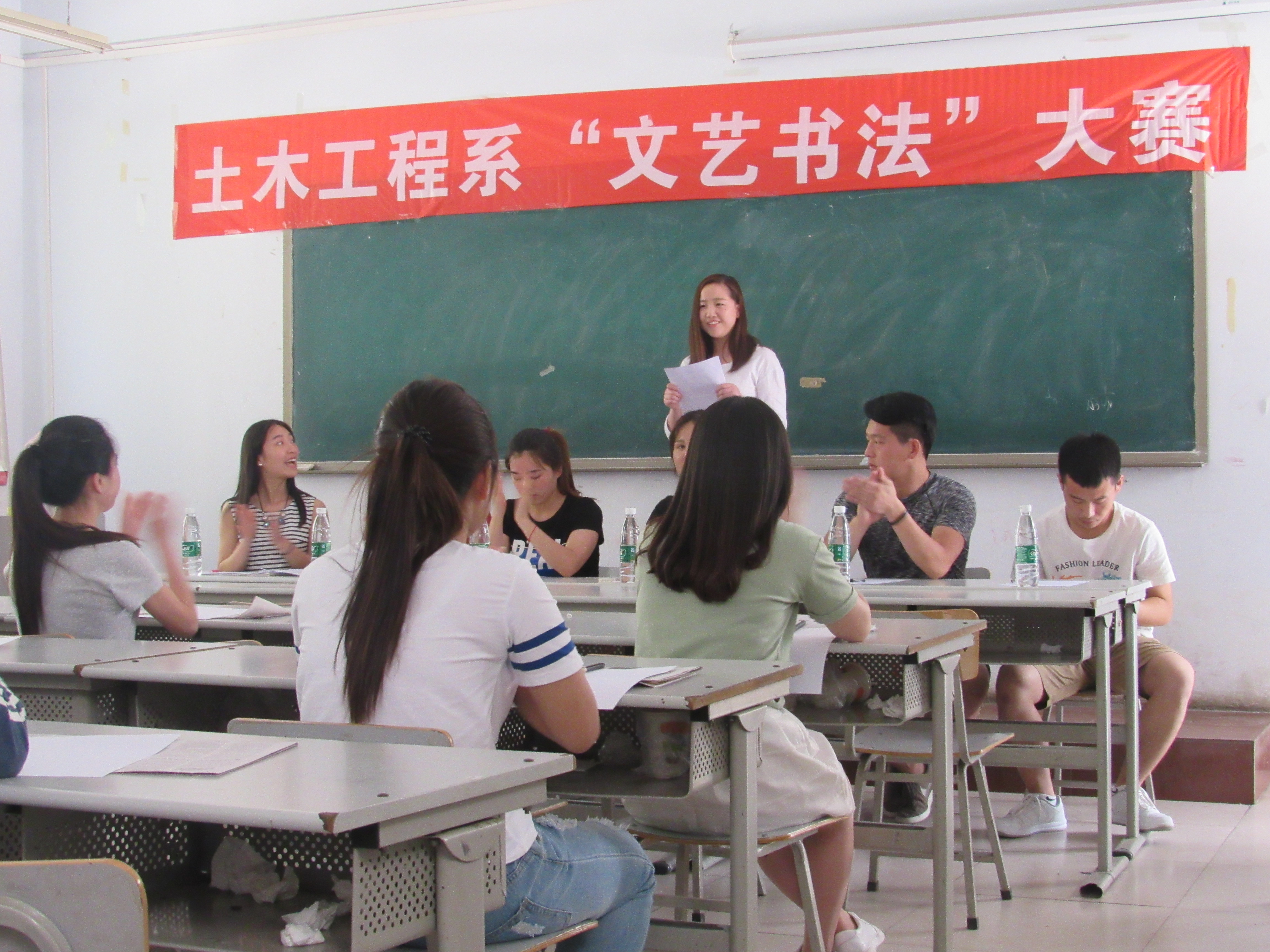 5月23日下午,土木工程系于团课时间在南教学楼102教室举办了文艺书法大赛。 此次活动以“弘扬传文化 、丰富校园生活”为主题,比赛中,同学们尽其所能展示自身书法才能,短短40分钟时间内涌现出了一批佳作。最终,151021班陈韦博、151215班黄永昌获得一等奖,151212班华琼、151214班鲁瑾月获得二等奖,151212班杨培园、151214班吴梦、151215班何博、151031班罗培培、151031班徐倩文获得三等奖。
