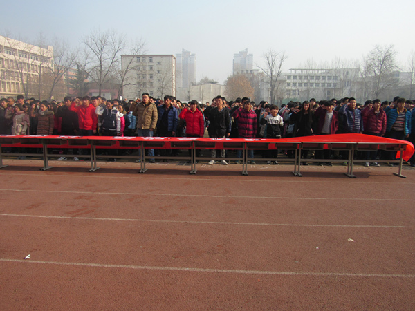 学生在“诚信考试”条幅上签名承诺