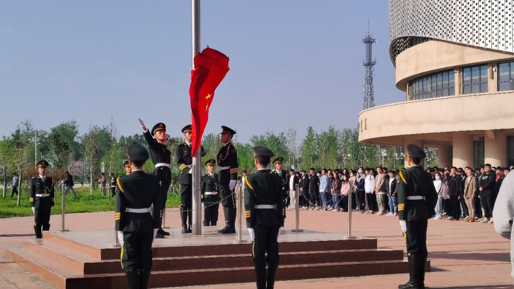 4月10日,土木工程系在航空港校区举行升国旗仪式,系党总支书记文琳、全体学管老师及在校生参加。