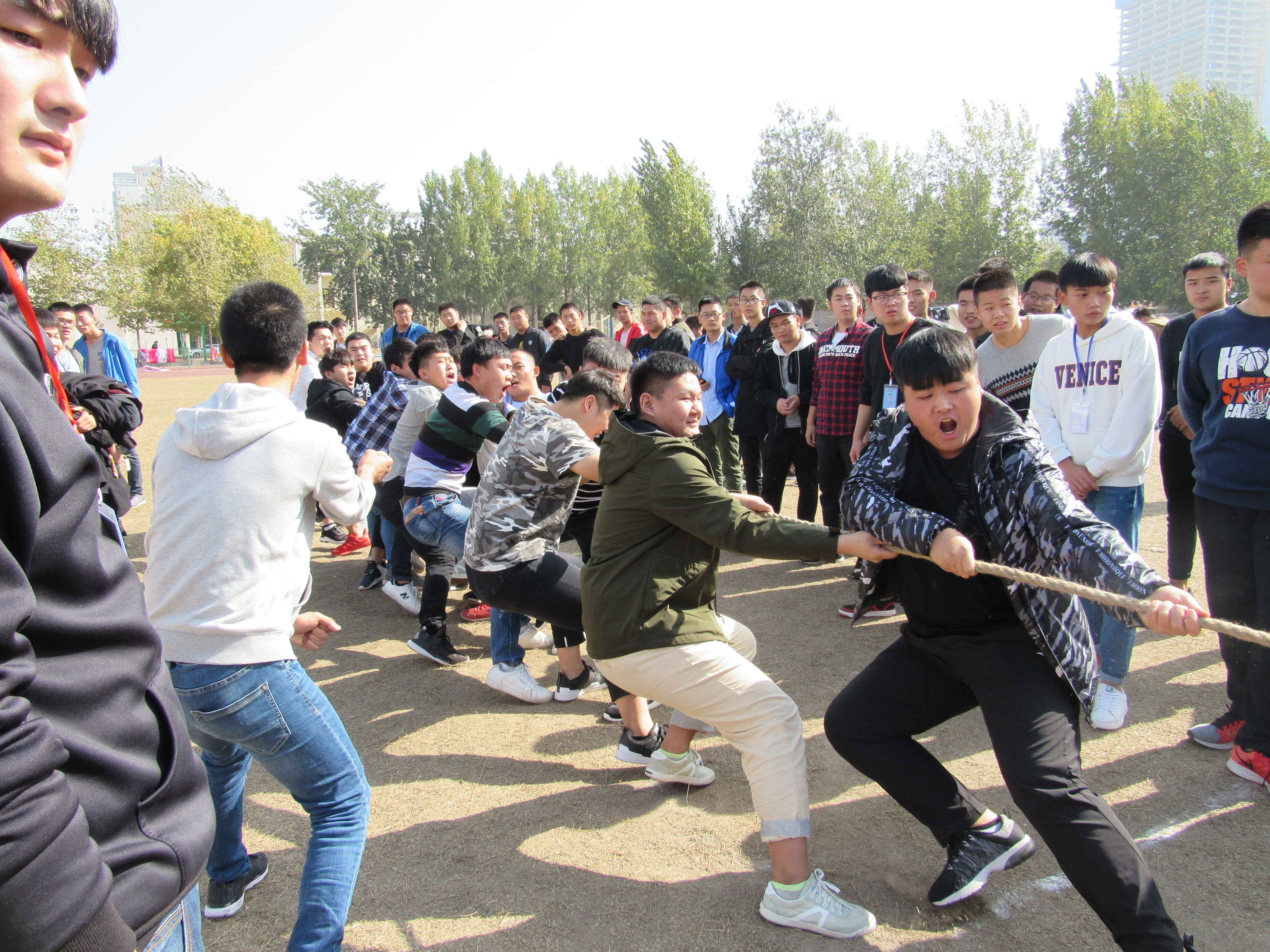 为丰富学生的精神文化生活,增强班级凝聚力,促进班级之间交流,土木工程系于2017年10月31日举办了迎新拔河比赛。