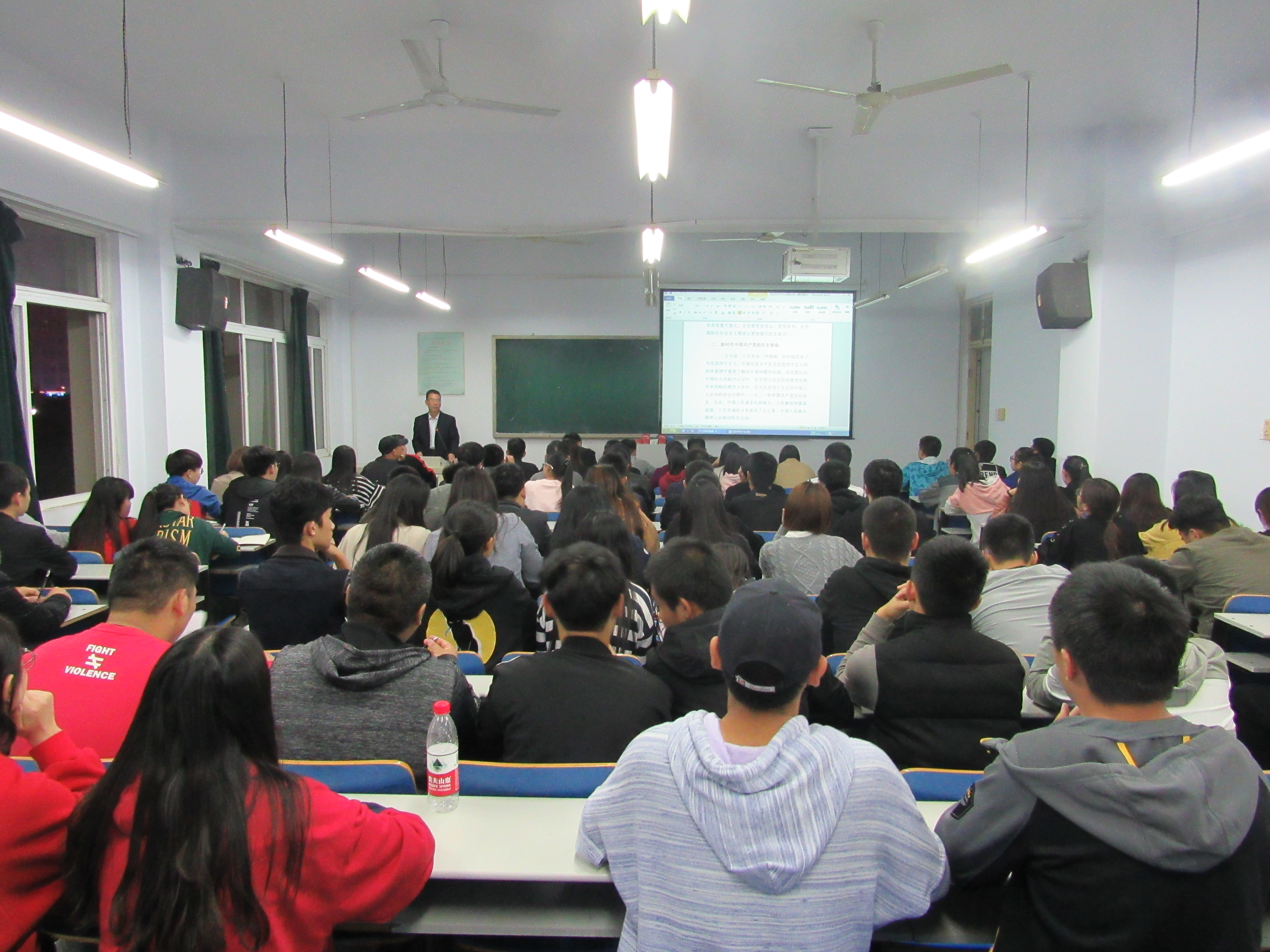 为学习贯彻党的十九大精神,促使同学们不忘初心,跟党走,2017年11月9日晚7:00,土木工程系在南教404教室以十九大报告解读为主题开展了生动务实的党课。本次党课由系党支部书记文琳主讲,90余名入党积极分子参加党课培训。