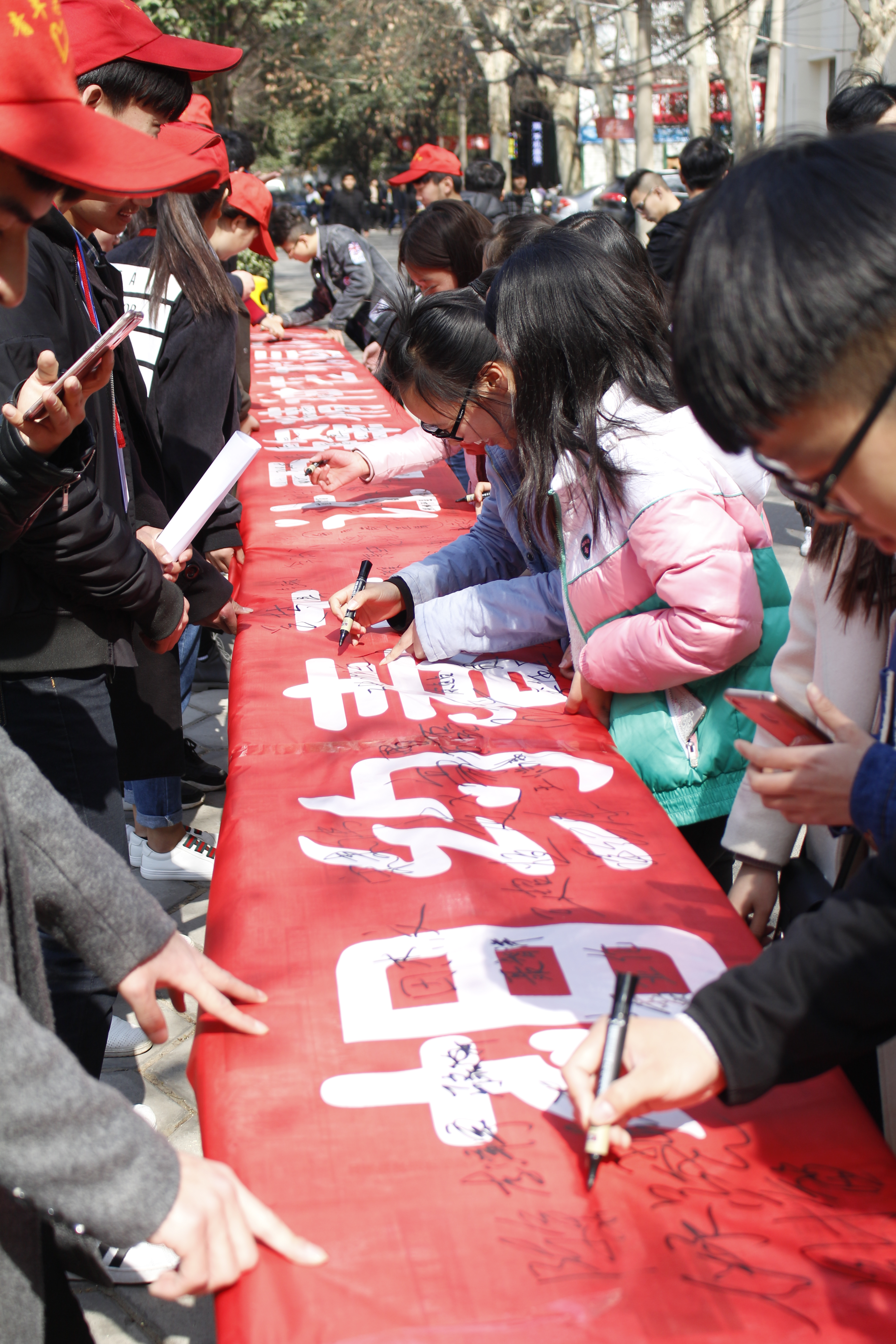 机电与信息工程系于2017年3月3日在图书馆前开展了“学雷锋”签名活动,志愿者们向来往同学介绍活动基本情况,同学们听后纷纷表示要把雷锋精神发扬光大,为创造良好校园环境贡献自己的力量,并在“相约春天,让雷锋精神在校园闪光”横幅上签字承诺。