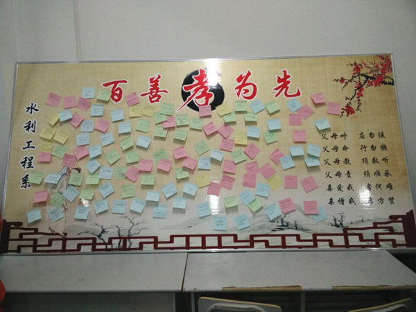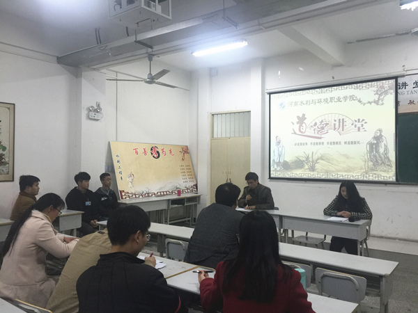 11月10日下午,水利工程系举办了以“百善孝为先”为主题的道德讲堂活动,系主任徐水平以及教师代表参加活动。此次活动共分为唱歌曲、学模范、诵经典、发善心、做承诺、写祝福等6个环节,让大家自我修行、自我教育、自我提升,洗心净心。徐主任在讲话中指出,希望大家都能积极参与、认真感悟,通过“道德讲堂”的引导,认识到孝的重要地位 ,尽孝道不能仅限于一些特定的节日,需要在生活的点点滴滴中体现,孝敬父母、赡养老人是我们每个人应尽的责任和义务。活动中老师和同学们都认真参与每一个环节,用心聆听老师的演讲,真正感受心灵的成长,成为道德建设的先行者和道德传播的实践者。