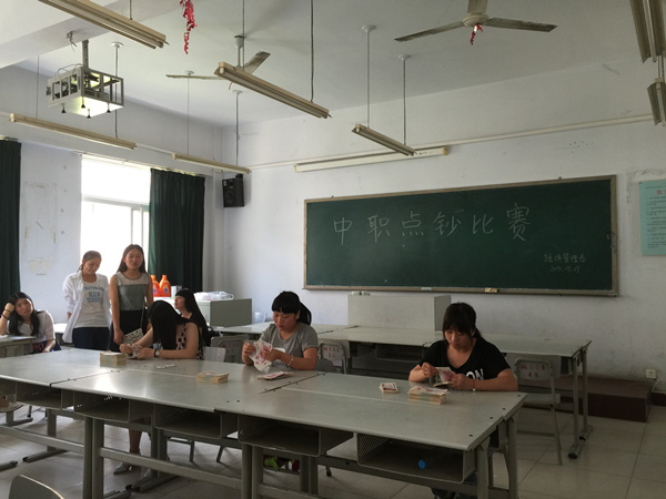 为提高学生的综合素质,锻炼学生的实际操作能力,经济管理系于2015年5月19日组织中职部学生开展了点钞比赛。本次比赛分为单指单张点钞和多指多张点钞两组进行比赛中,选手们的手指在纸钞上不停飞舞,绚丽的点钞手法让在场的观众大开眼界。比赛进一步提高了学生学习专业技能的积极性,锻炼了参赛学生的临场应变能力,达到了素质培养与才能展示的活动目的。