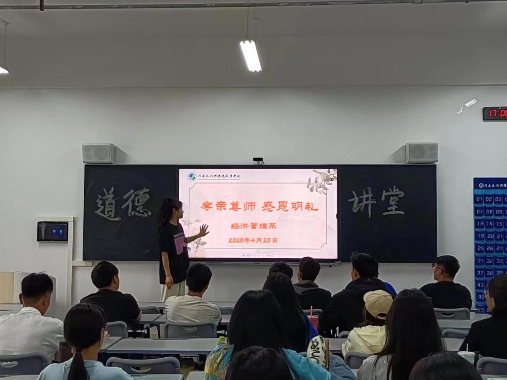 为弘扬中华优秀传统文化,4月25日,经济管理系开展“孝亲尊师,感恩明礼”道德讲堂活动,各班学生代表参加。