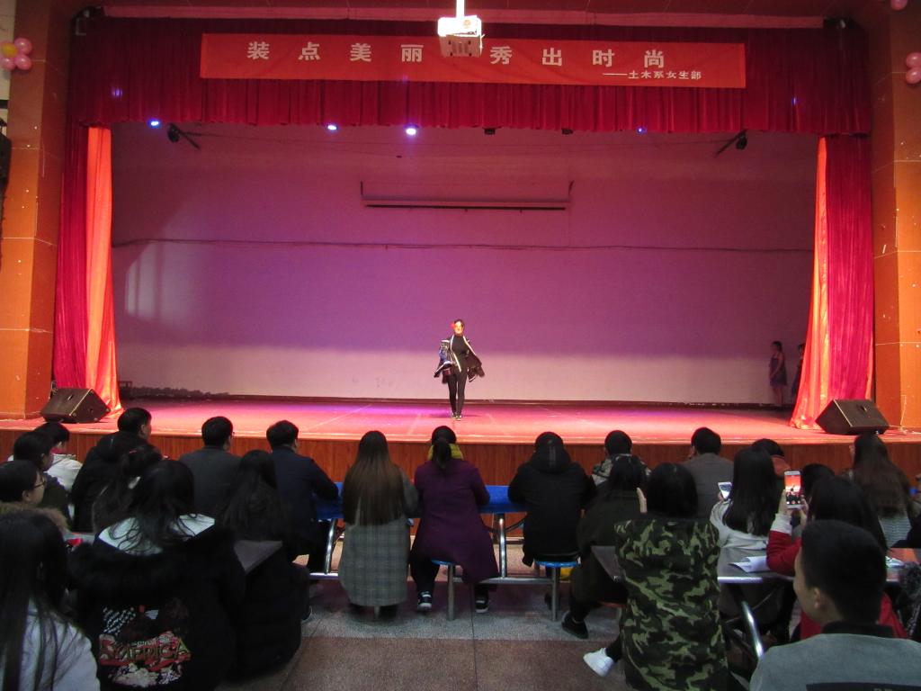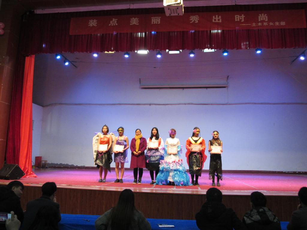 为增强学生的环保意识及艺术情操,提升学生动手能力和艺术风采,2017年11月22日19:00,土木工程系在大礼堂举办“装点美丽,秀出时尚”走秀大赛。