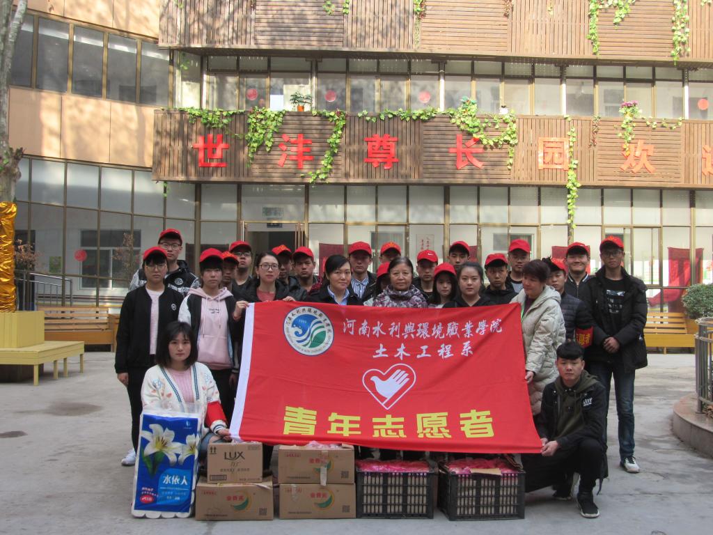 2018年3月10日上午,土木工程系组织青年志愿者带着水果及生活用品,到世沣尊长园开展献爱心活动。活动中,志愿者们为老人打扫房间,即兴表演歌唱、舞蹈、朗诵等节目,陪爷爷奶奶聊天、散步。此次活动,让志愿者们近距离了解老人,献出关怀,使关爱老人的传统美德更加深入人心。