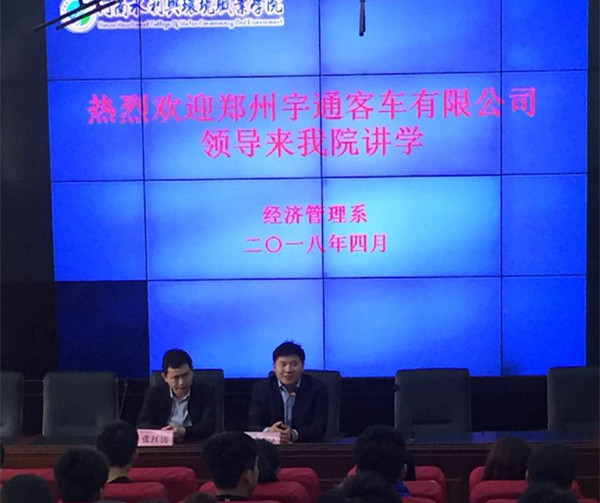 2018年4月26日下午,经济管理系邀请郑州市宇通客车股份有限公司经理高建民受到校作专题讲座,系部分老师和物流管理专业全体学生聆听此次讲座。