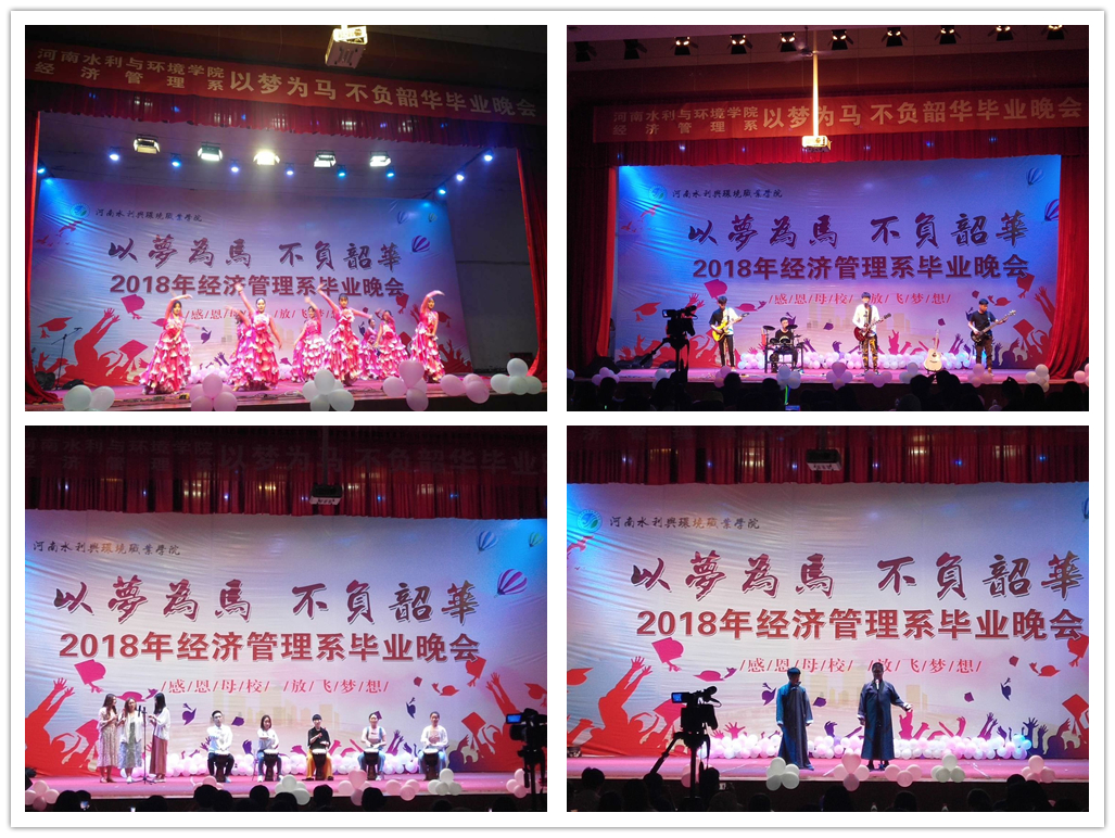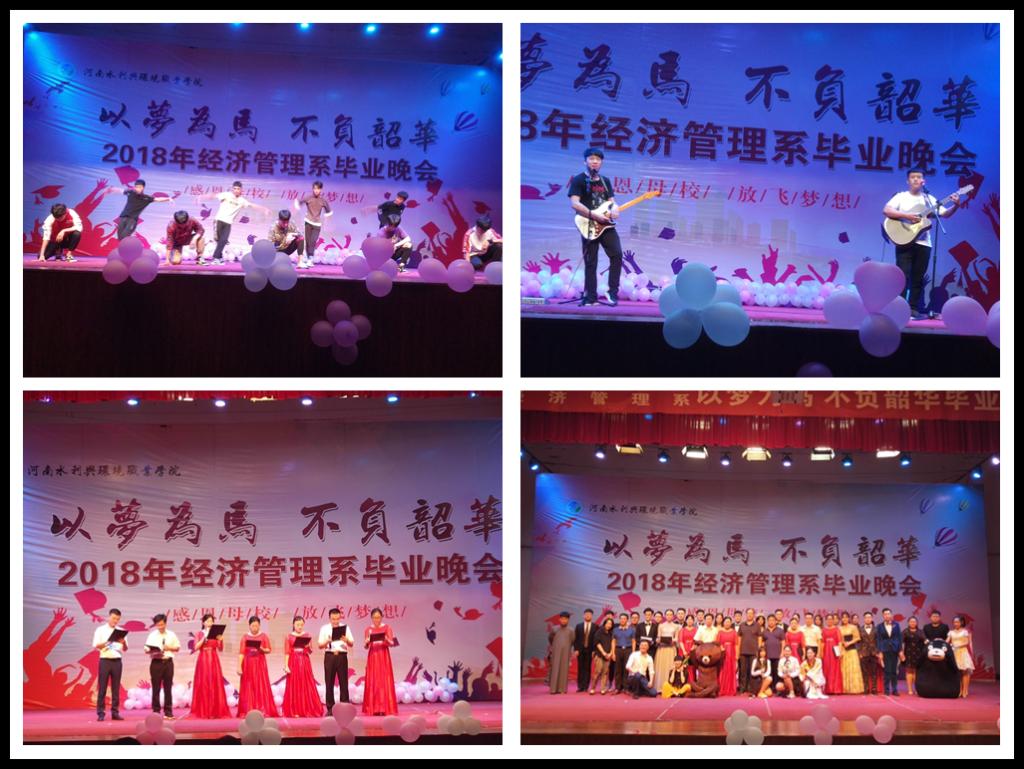 2018年5月29日晚,经济管理系举办了“以梦为马,不负韶华”主题毕业晚会。院纪委书记李连水、学生处处长宋金晓、经济管理系主任肖文珍及全系师生参加晚会。