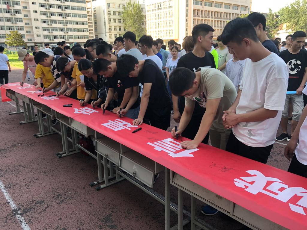 为增强同学们的诚信意识,严肃考风考纪,水利工程系于2018年6月5日在运动场举办了“诚信是金”签名活动。