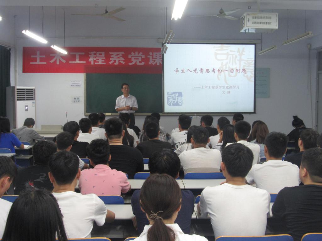 2018年9月13日19:30,土木工程系在南教304教室开展了本学期第一次党课培训,入党积极分子、申请入党的同学参加培训,党课由系党支部书记文琳主讲。