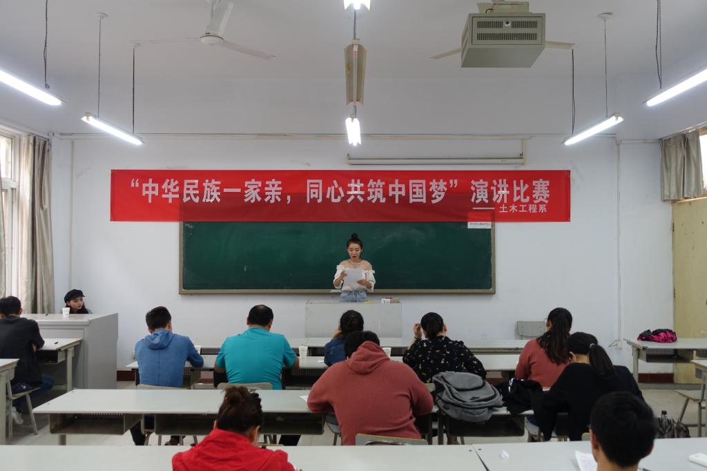 为深入学习习近平总书记关于民族工作的重要论述,促进高校学生铸牢中华民族共同体意识,土木工程系于2018年9月25日在南教103教室举办了“中华民族一家亲,同心共筑中国梦”主题演讲比赛。