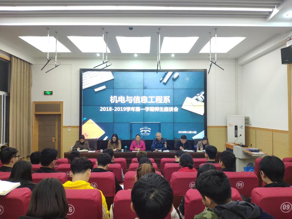 2018年11月6~13日,机电与信息工程系在北教三阶召开师生座谈会。系党总支副书记岳学超、副主任王利卿,教师代表以及2018级各班学生代表参加。