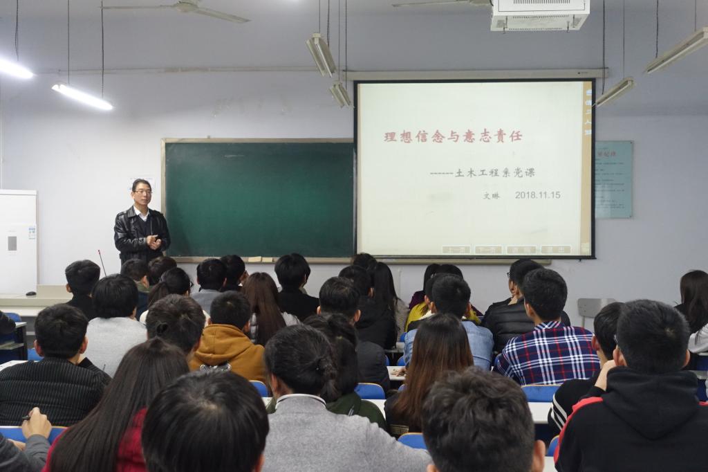 为促使入党积极分子深入了解党的性质,增强党性修养,土木工程系于2018年11月15日晚在南教304教室开展了“理想信念与意志责任”党课培训。党课由系党总支书记文琳主讲,入党积极分子和有入党意向的同学参加培训。