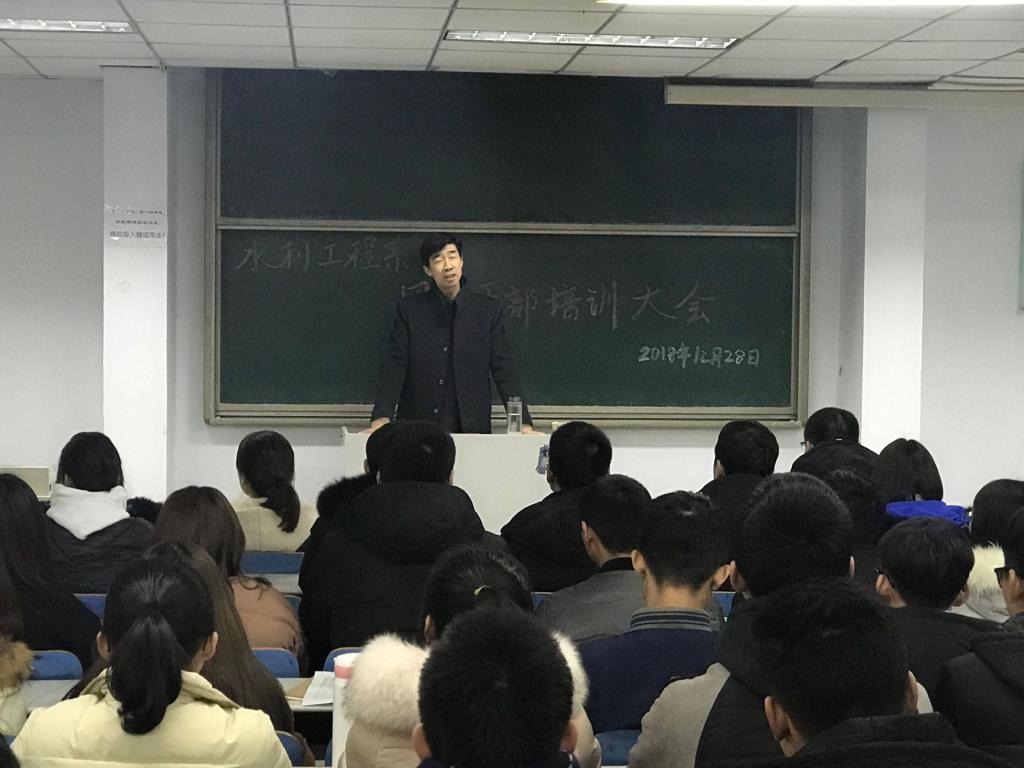 2018年12月28日,水利工程系召开了第十八届团学干部大会,全体学管老师和团学干部参加会议。会上,系副主任王建军分析了学生干部中存在的问题并提出三点要求:一是要严于律己,切实起到模范带头作用;二是要严格遵守为同学们服务的宗旨,甘于奉献;三是要有积极的工作态度和强烈的责任心,合理分工,团结合作,有序开展工作。