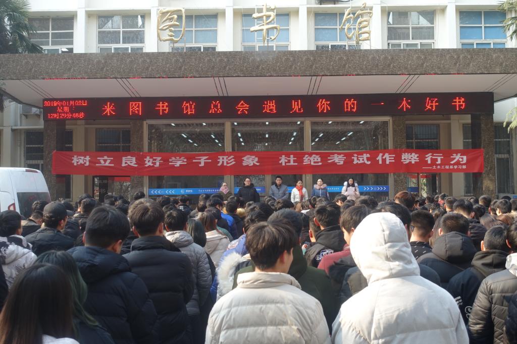 为了营造良好校风学风,加强纪律教育,土木工程系于1月2日举行了“诚信考试,杜绝舞弊”宣誓大会。系全体学管老师及2018级同学参加。活动中,系副主任钟含要求同学们要严格遵守考试纪律,杜绝作弊行为,本着诚实守信的态度考出真实水平,并将诚信贯穿于以后的生活、工作中,创造属于自己的美好未来。