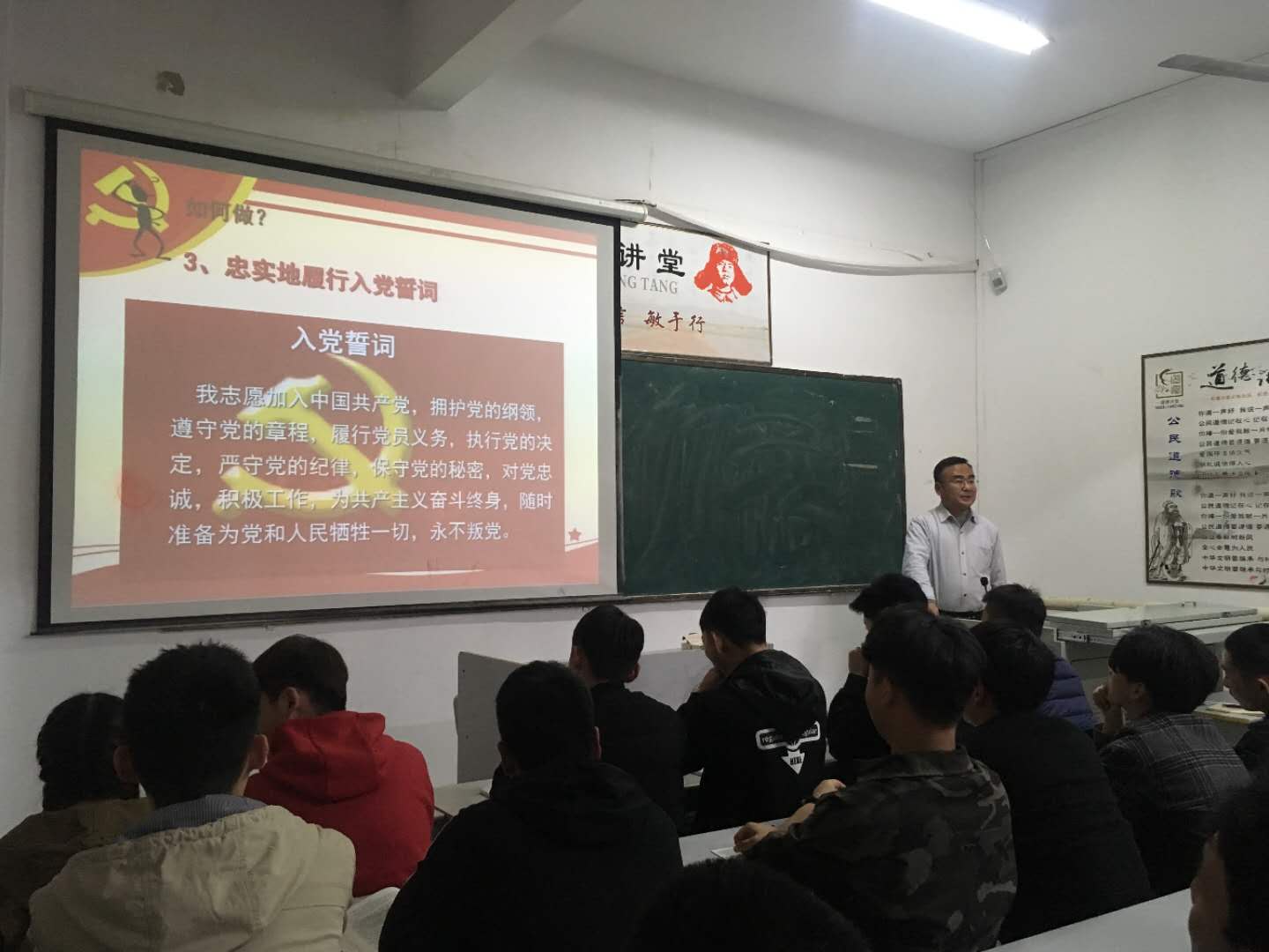 3月12日,水利工程系在综合楼408教室进行了本学期第一次党课培训。系党总支书记李文林向同学们介绍了党的发展历程和入党需要具备的条件,使大家明确了努力方向,坚定了加入党组织的决心。