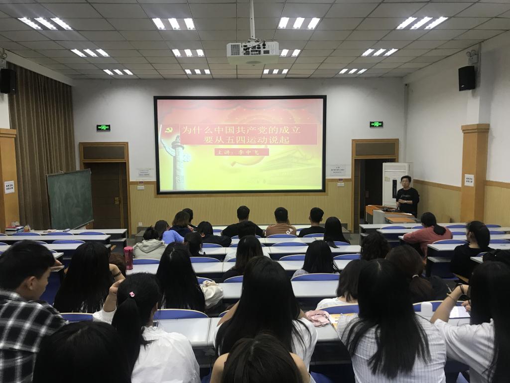5月9日晚,经济管理系在北教一阶组织开展了本学期第四次党课培训,2017、2018级入党积极分子参加学习。党课上,经济管理系党总支学生支部书记李中飞以《为什么中国共产党的成立要从五四运动说起》为题,详细讲解了五四运动的经过、意义,深入剖析了五四运动和中国共产党成立之间的内在联系,要求同学们牢记历史,学习弘扬五四精神,坚定理想信念,努力学习,不断进步,报效国家。