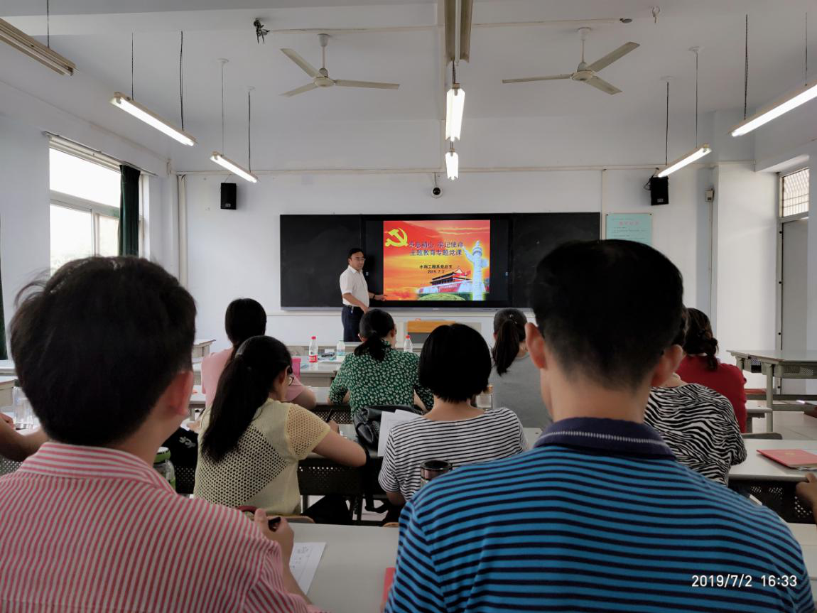 7月2日下午,水利工程系党总支举行 “不忘初心 牢记使命”主题教育专题党课。系党总支书记李文林以“不忘初心 牢记使命是中国共产党人党性锤炼的永恒主题”为主题为全体党员上了一堂党课。