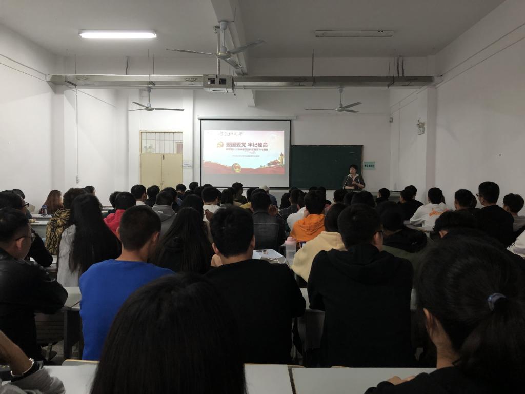 10月24日下午,环境工程系在综合楼407教室开展党课培训。系党总支学生党支部书记董晓明以《爱国爱党,牢记使命》为题为2019级有入党意愿同学、2018级入党积极分子等80名学生上了一堂生动精彩的党课。她号召大家爱党、爱国、跟党走,坚定理想信念,做爱国主义精神最坚定的实践者和传播者。