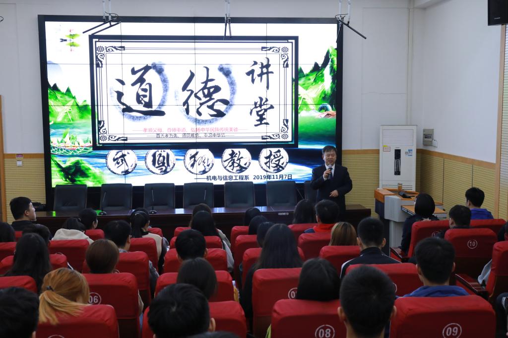 为加强道德建设工作,努力提高全系师生的思想道德水平和文明素质,11月8日下午,机电与信息工程系举办道德讲堂活动,全系学管老师及各班学生代表参加。