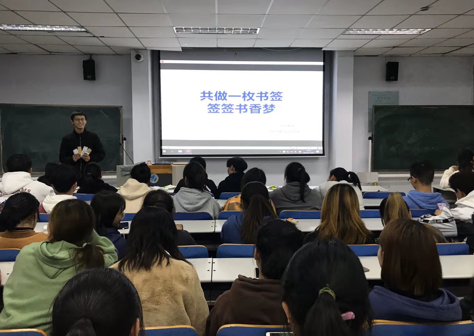 为深入开展“书香经管”活动,激发学生读书兴趣,创建系部读书特色,11月20日晚,经济管理系在南教105教室举办书香经管系列活动---“签签书香梦”DIY书签活动。2018、2019级各班代表参加活动。