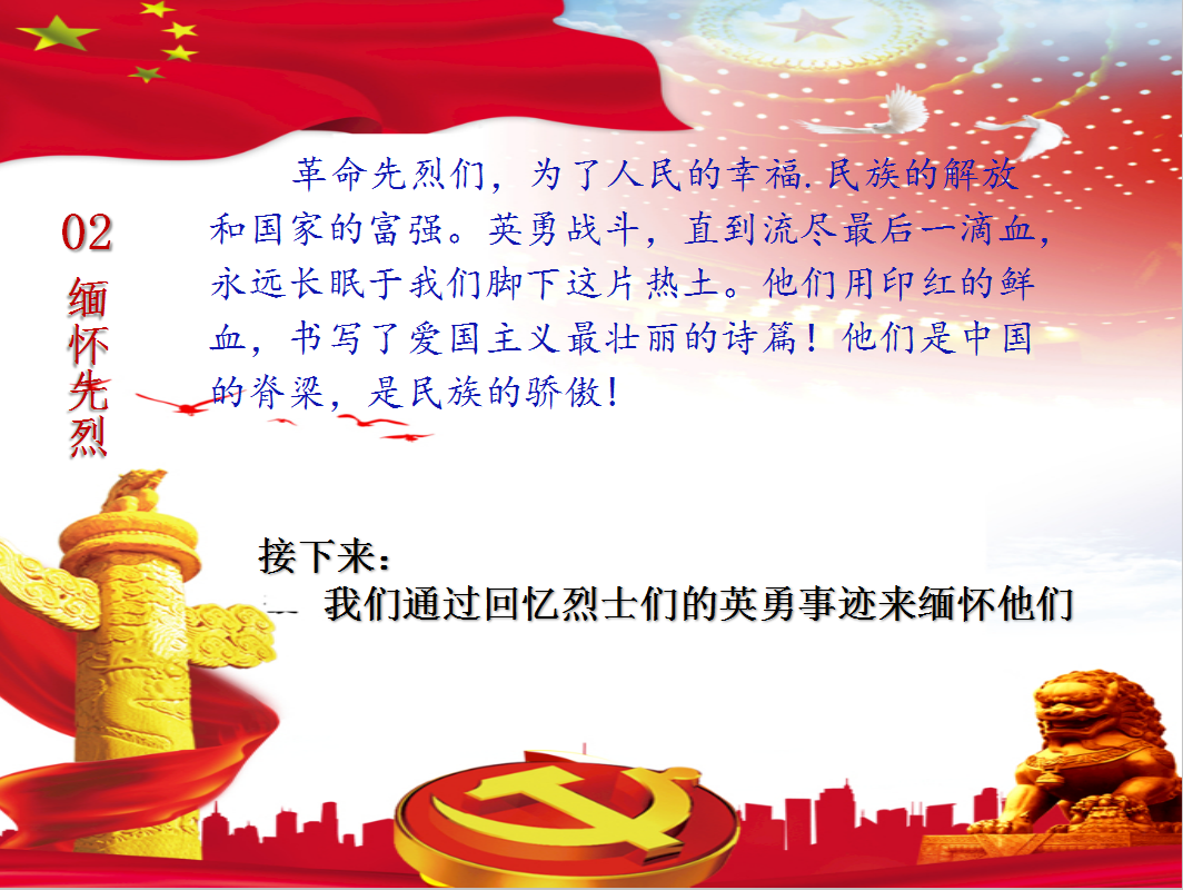 让大家通过谈论互动、观看视频和英烈事迹等,学习革命先驱的优秀品质,共同祭奠、缅怀他们。