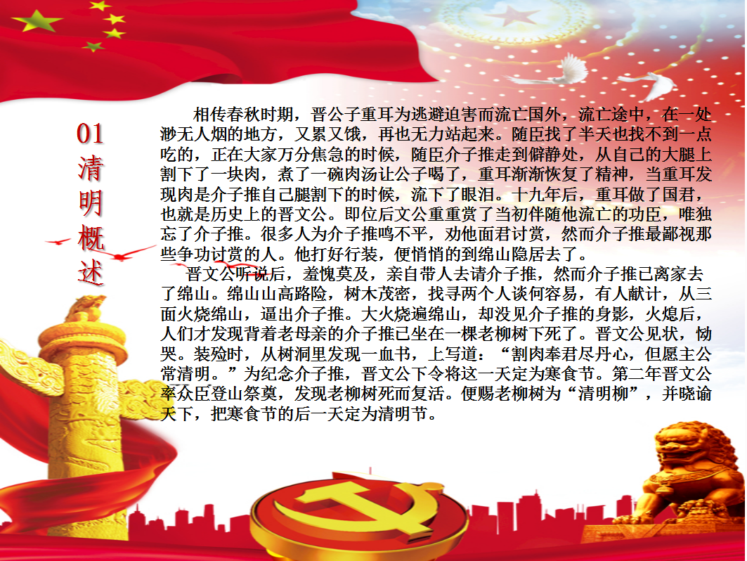 第一部分:清明概述,讲述清明节的历史出处和由来。
