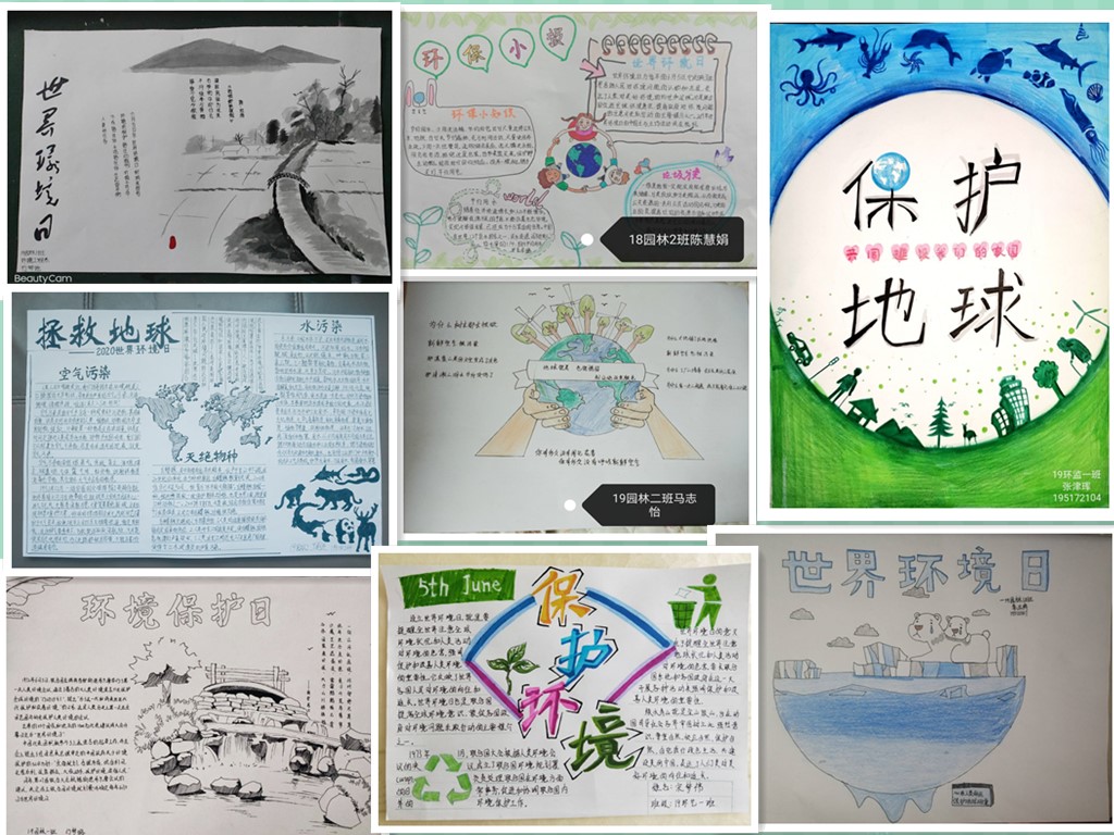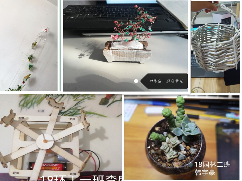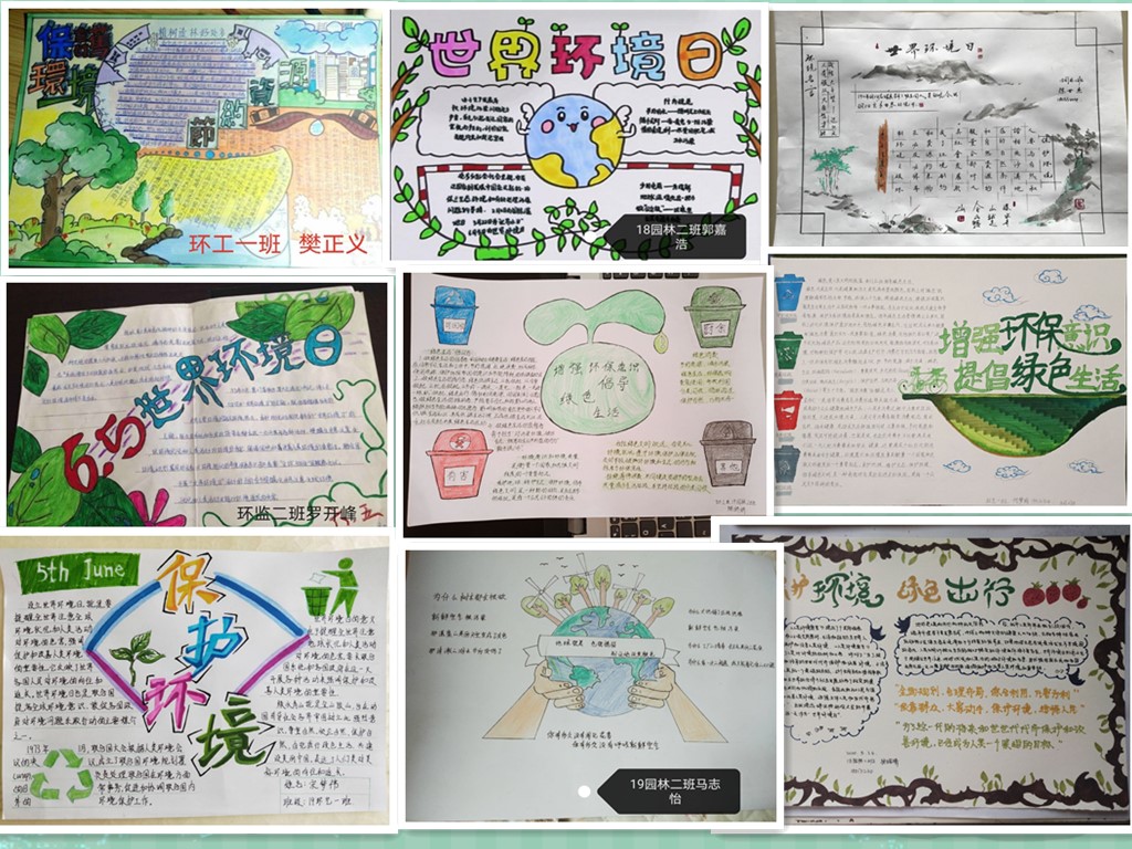 活动期间,任课教师在《花卉学》《普通化学》等网课课程中,引导学生就遵守环境法律法规,践行生态文明理念等开展线上讨论。以班级为单位举办了废物利用大赛和“环保你我他”手抄报大赛,同学们热情高涨,踊跃参加,41名同学分获一、二、三等奖。
