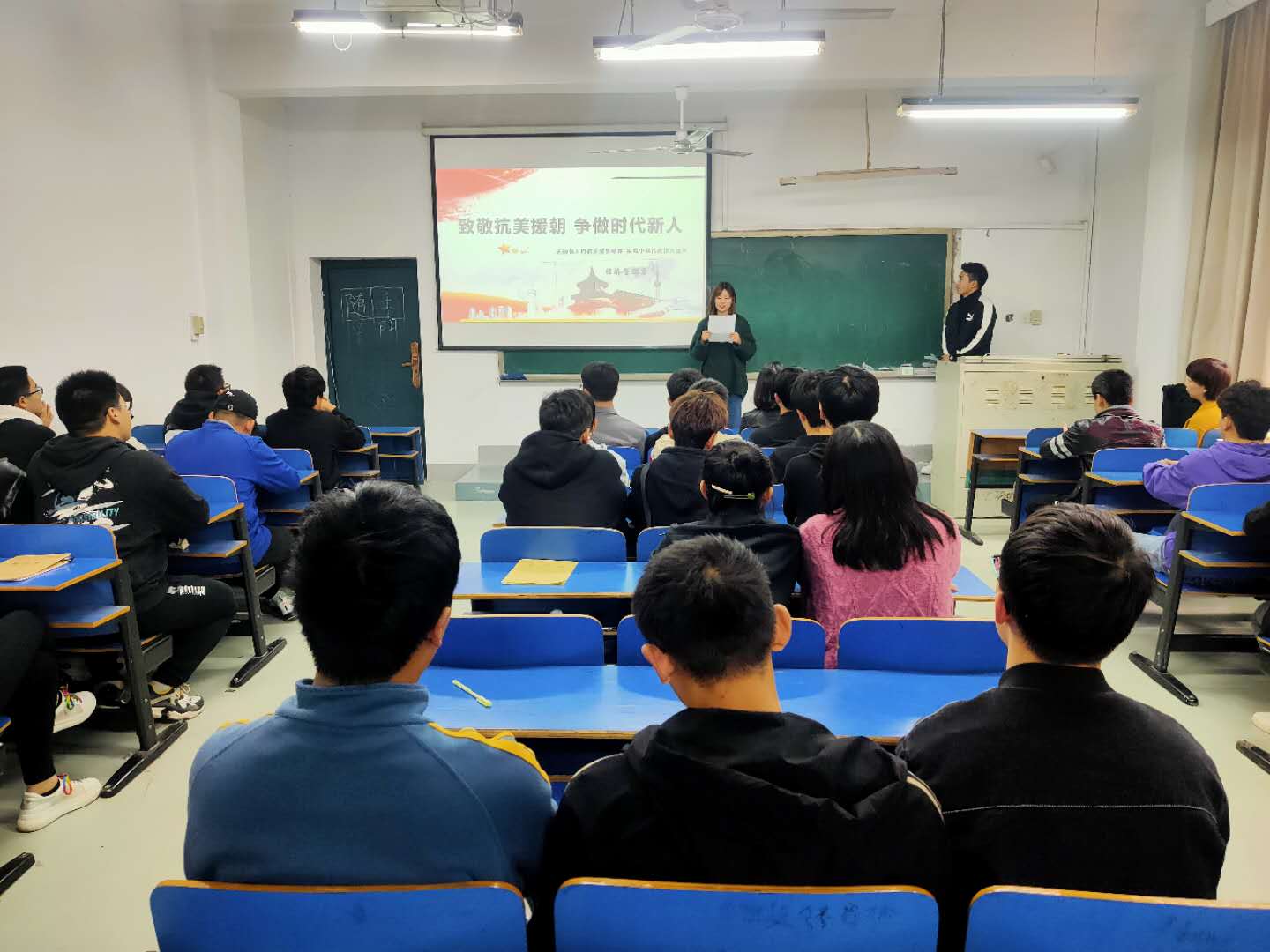 10月27日下午,经济管理系在北教210教室开展“致敬抗美援朝争做时代新人”主题团日活动。