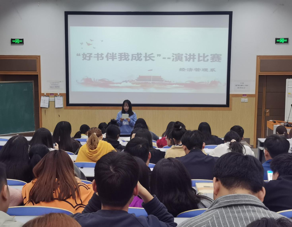 11月11日晚,经济管理系在花园路校区北教一阶教室举办“好书伴我成长”演讲比赛。19级各班代表参加比赛。