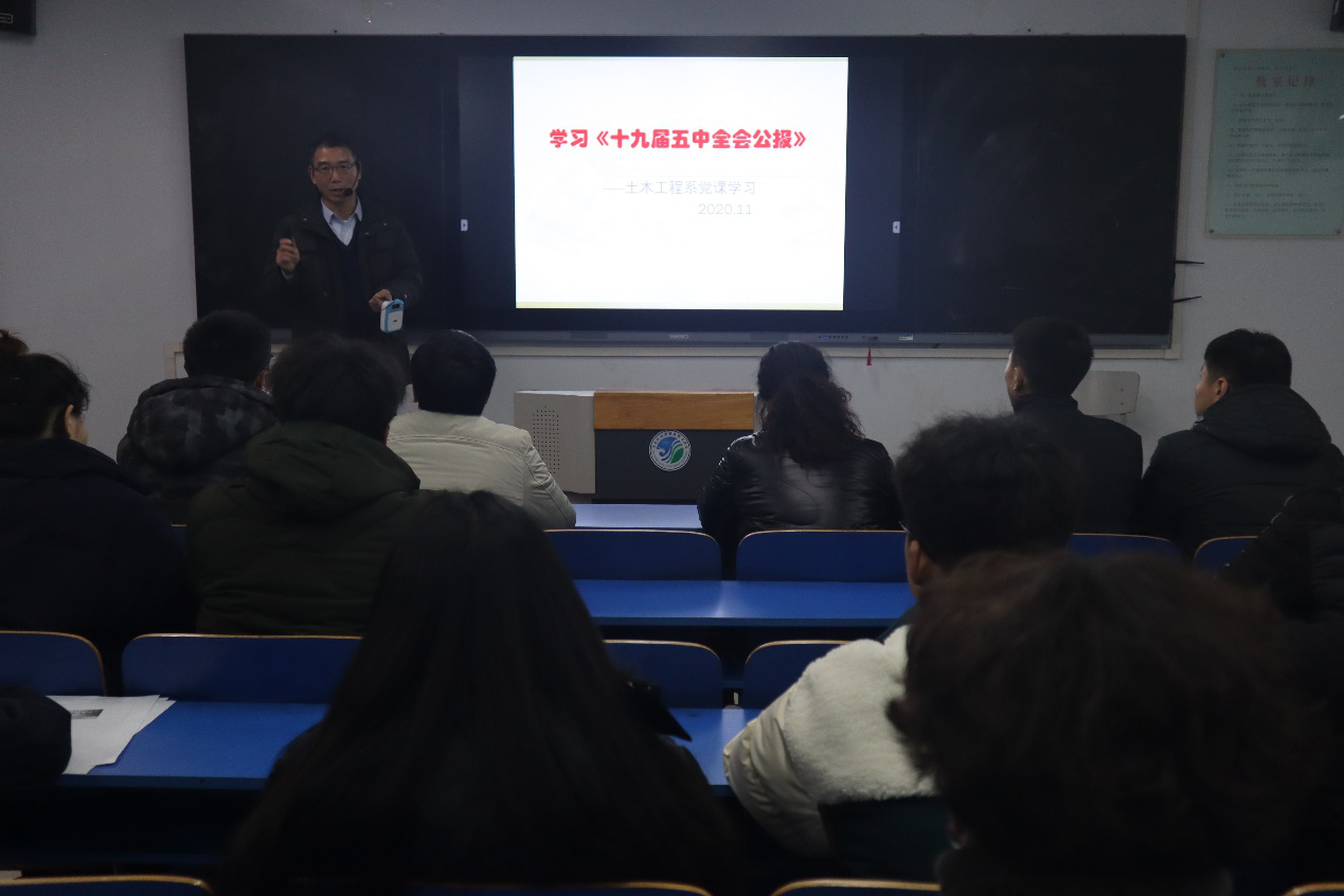 12月9日晚,土木工程系在南教204教室开展“党的十九届五中全会精神”主题党课培训。培训由系党总支书记文琳主讲,2019级入党积极分子参加此次培训。