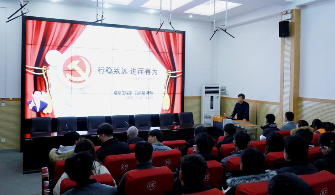 12月15日晚,信息工程系党总支在北教三阶教室开展以“行稳致远 进而有为”主题党课培训。培训由系党总支书记武凤翔主讲,系全体辅导员、新发展预备党员和在校入党积极分子参加培训。