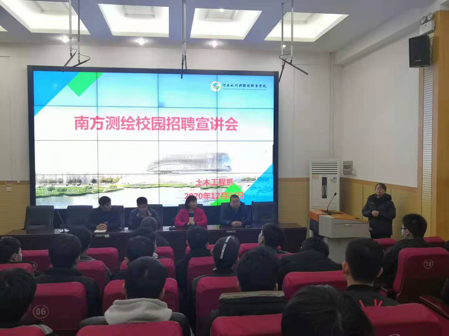 12月22日上午,土木工程系在北三阶教室举办校园招聘宣讲会。南方测绘公司4名企业代表,系相关负责人和工程测量技术、摄影测量与遥感技术、地籍测量与土地管理等专业70余名师生参加此次招聘会。