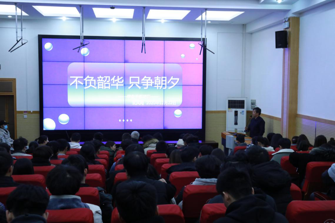 12月22日,信息工程系在北教三阶教室开展“坚持梦想,不负韶华”学生干部培训。培训由系党总支书记武凤翔主讲,系学管老师、团学干部和班干部参加。
