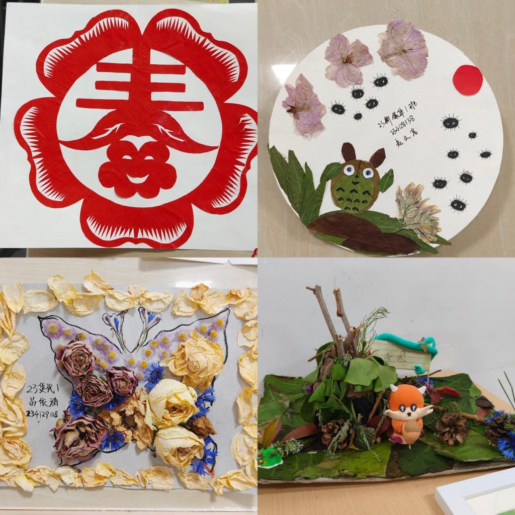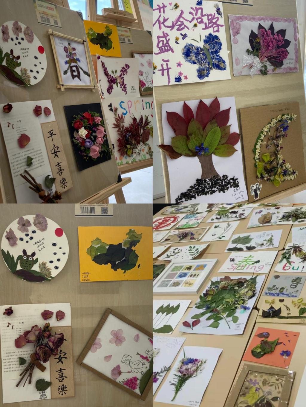 活动中,同学们自行采集落叶,购买花束,充分发挥想象力和创造力,将花瓣叶子与绘画和剪纸艺术相结合,创作出各种生动有趣的作品,一幅幅春日美景被同学们记录在相框和彩纸上。活动最终收到作品167份,共评选出一等奖2名、二等奖10名、三等奖15名。