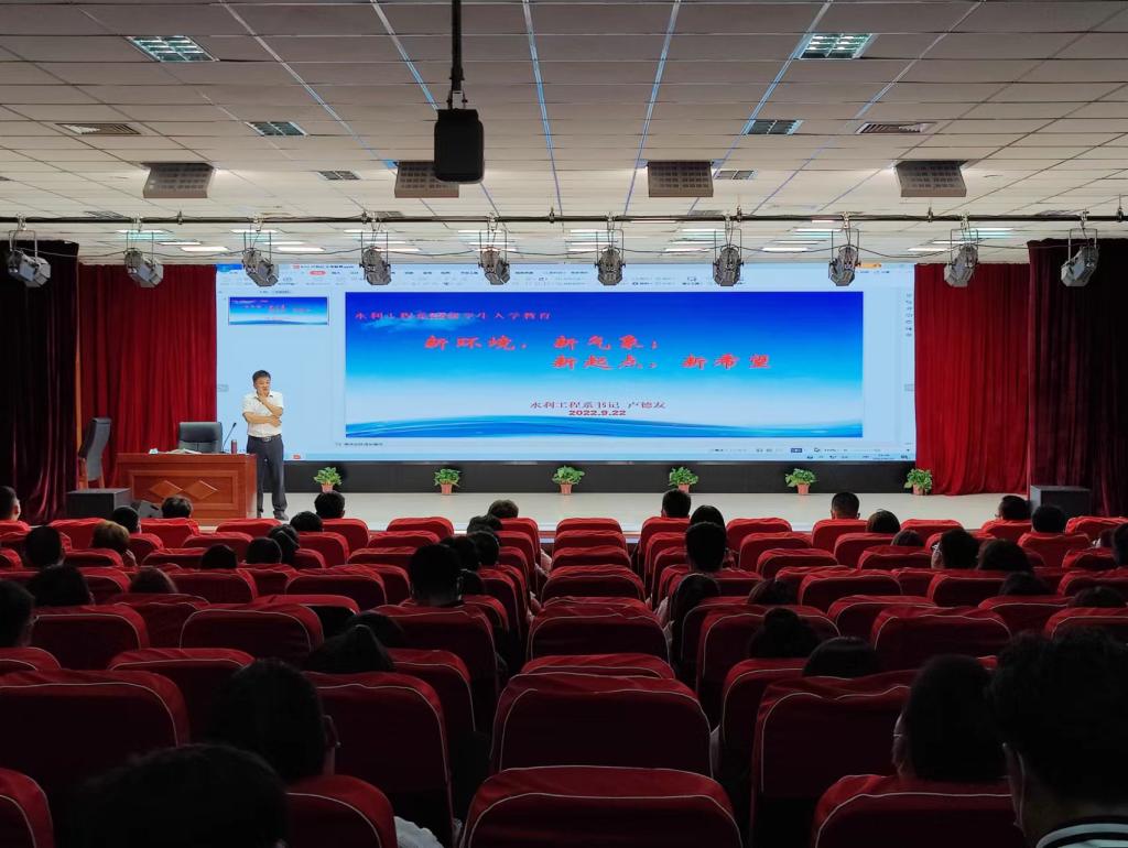 9月22日,水利工程系开展2022级新生入学教育暨开学第一课,系党总支书记卢德友主讲,新生代表参加。活动中,卢德友首先对2022级新生的到来表示欢迎,以“新环境,新气象;新起点,新希望”为主题,介绍了水利工程系的基本情况,重点讲解了学校疫情防控工作具体要求,并勉励大家要制定好学习计划,做好个人职业规划,在新的起点整装出发,以良好的精神状态开启新的篇章。