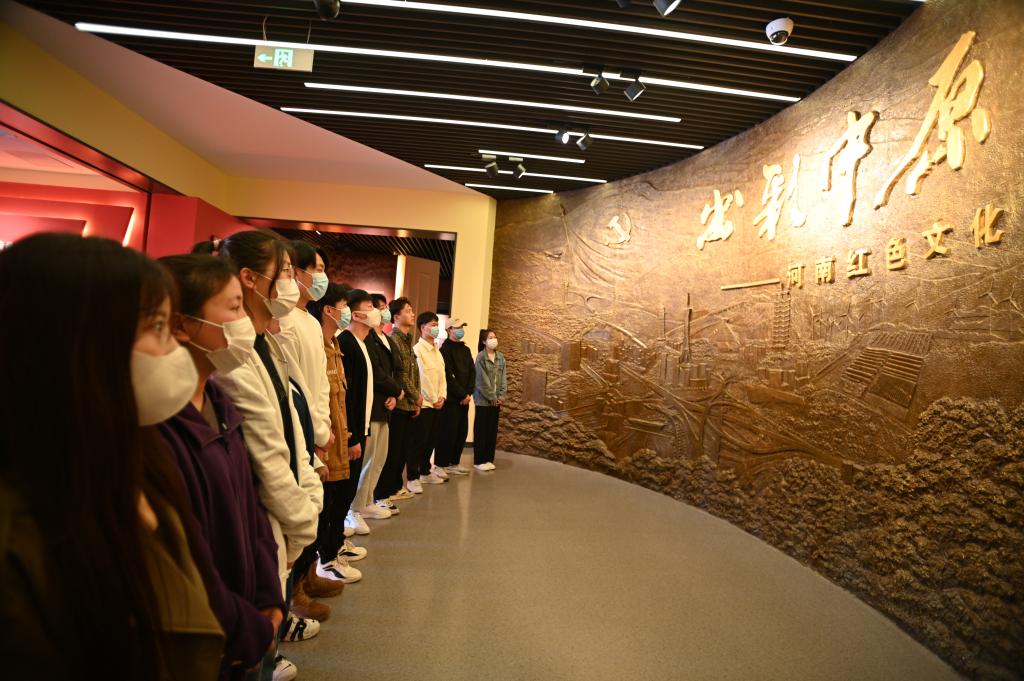 展馆以时间为线索,立足河南红色资源,从“打破旧世界”、“建设新家园”、“走进新时代”三个部分,展示了近现代河南波澜壮阔的红色历史画卷,着重诠释了大别山精神、红旗渠精神和焦裕禄精神的实质内涵。跟随着展馆讲解员的解说,同学们认真聆听、仔细观摩、详细了解了在中国共产党的领导下,河南人民救亡图存、建设河南的伟大历程以及改革开放以来取得的辉煌成就,感动至深。