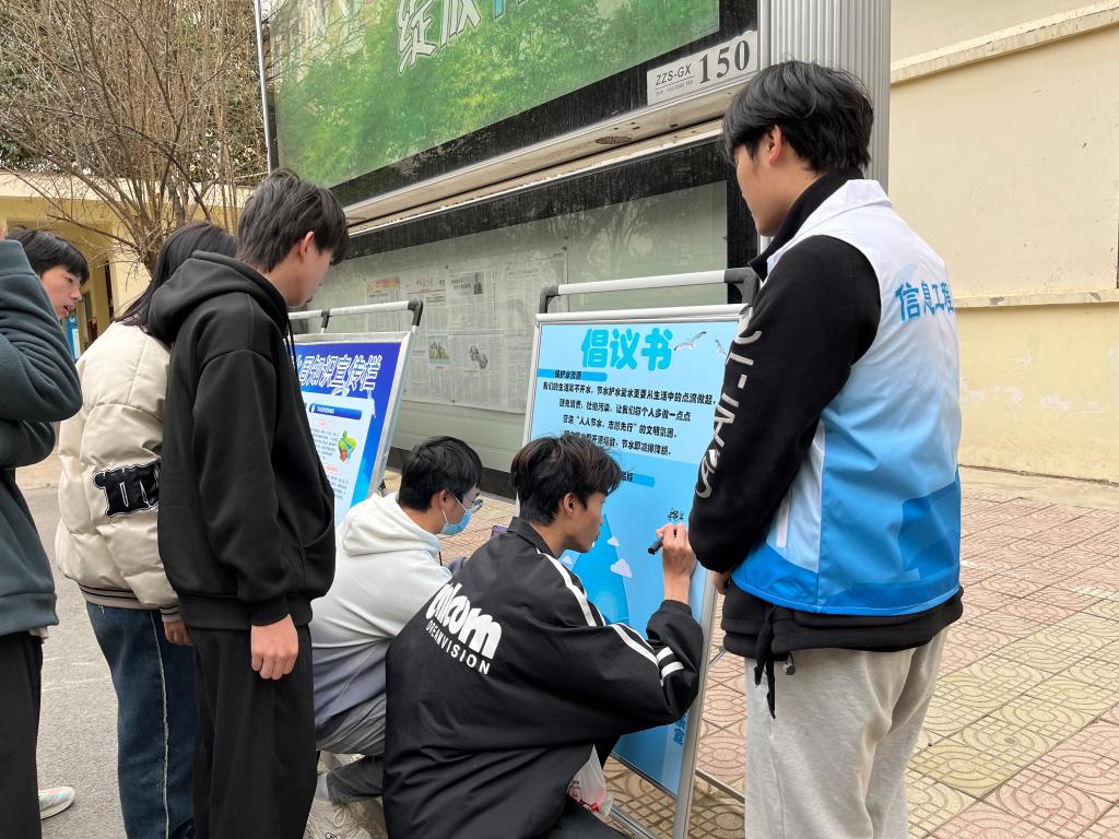 本次活动包括“人人节水,志愿先行”主题学习交流会、世界水日暨中国水周节水用水知识宣传、节水护水倡议签名活动。活动期间,同学们踊跃报名,积极参与,认真学习节水环保知识,增强了水资源保护意识,纷纷表示要以实际行动做节约用水、保护环境的倡导者和践行者。