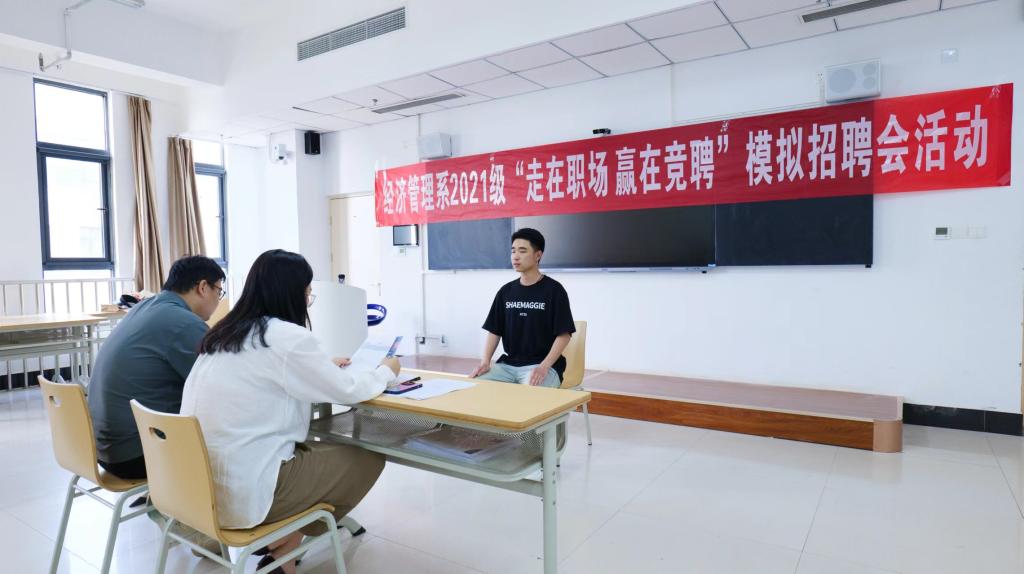 为增强学生职业规划意识,提高求职面试能力,5月17日-18日,经济管理系举办“走在职场,赢在竞聘”模拟招聘会活动,系2021级全体学生参加。