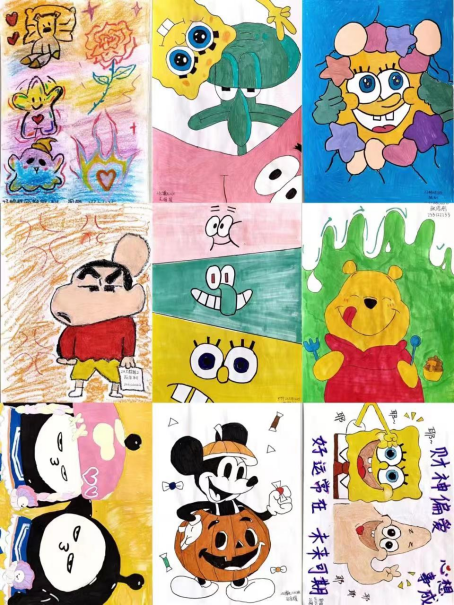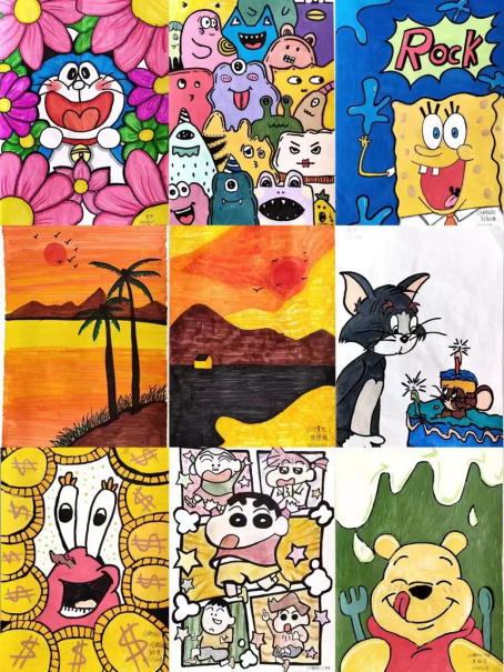 活动期间,同学们通过绘彩的形式,在白纸上绘制各种图案,运用五彩斑斓的色彩描绘出生动的动漫人物、吉祥物等,创作出各具特色的涂鸦作品。