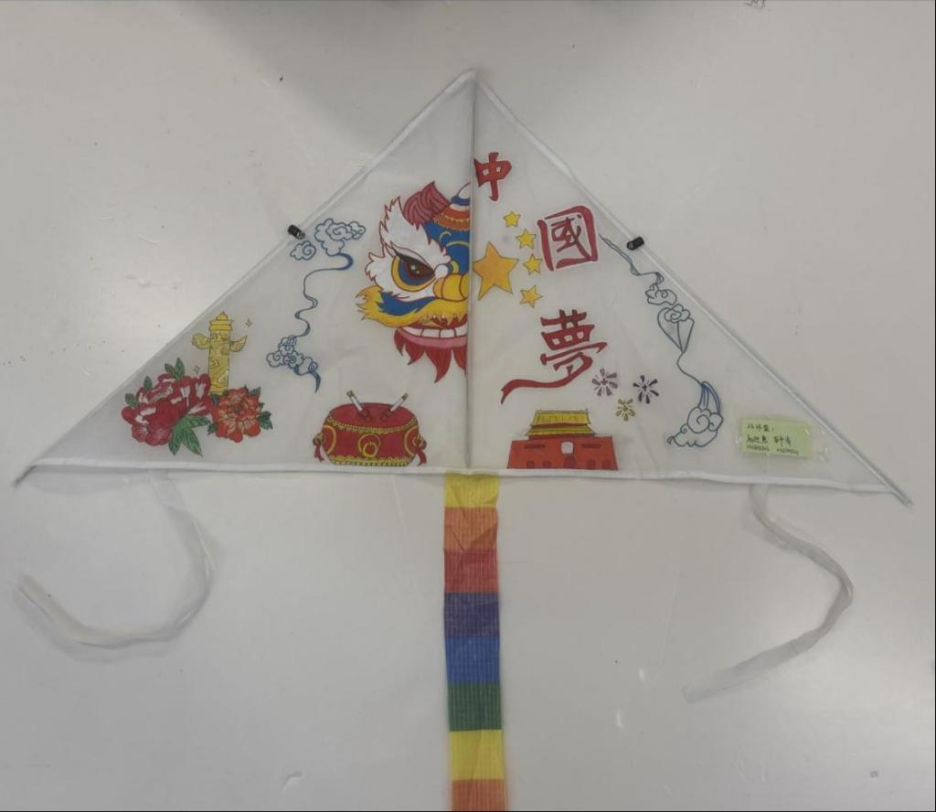 活动之前,同学们首先了解了风筝这一非物质文化遗产的历史起源、制作方法和艺术特色,对中国传统风筝文化有了更深刻地认识。活动中,学生们兴致勃勃地拿起画笔和颜料,在风筝上绘制出主题丰富多样的图案:有的用蓝天白云、青山绿水描绘了自己心目中的美丽家园;有的融入中华优秀传统文化、红色文化等元素,展现了文化自信,表达了对祖国的热爱之情。这些风筝不仅色彩斑斓、形象生动,而且寓意深刻、富有创意,充分展示了同学们的艺术才华和对美好生活的热爱。