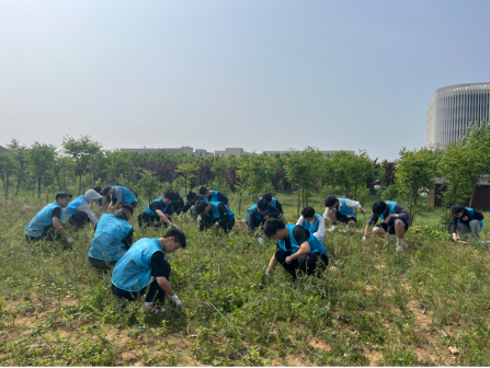在“五一”国际劳动节来临之际,为弘扬劳动精神,引导学生树立正确的劳动观念,水利工程系于4月29日组织23级团学干部开展校园除草劳动实践活动。