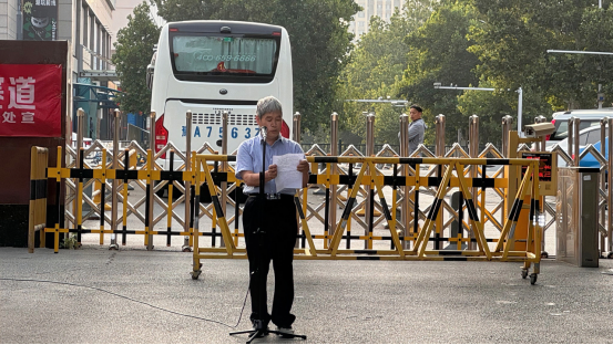 郭海山发表国旗下讲话,他指出,西迁精神是中国高等教育事业发展中一笔宝贵的精神财富,体现了老一辈教育工作者的爱国情怀和奉献精神。作为新时代的大学生,应该继承和发扬西迁精神,努力学习,为祖国的发展贡献自己的力量。