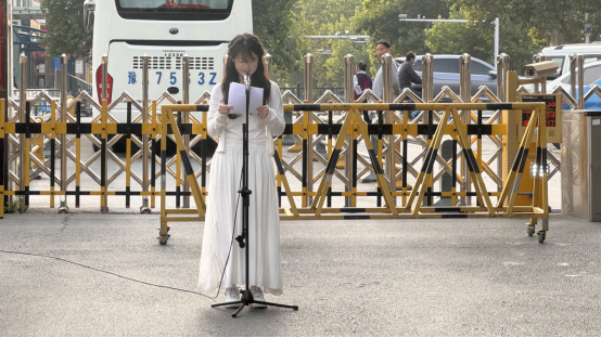 学生代表在国旗下发表题为《传承西迁精神,争做时代新人》的演讲,她从西迁精神的历史背景、内涵和现实意义等方面进行了深入阐述。她表示,作为环境工程系的一员,将以实际行动践行西迁精神,努力学习专业知识,为祖国的环保事业贡献自己的力量。