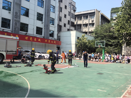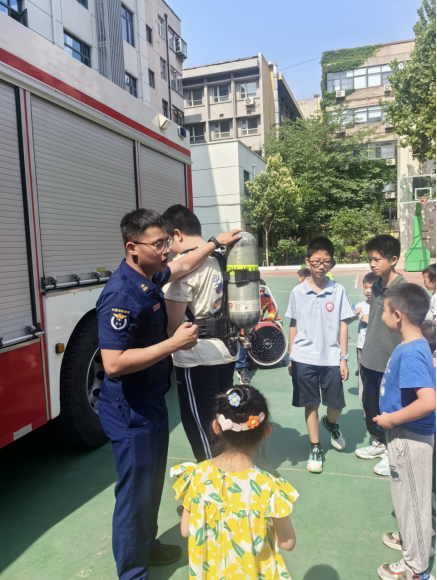 6月1日上午,校工会与教辅党总支在金水区纬五路消防站联合开展“小小消防员”儿童节活动。taptap点点50余名教职工和60余名儿童共同走进消防站参观。