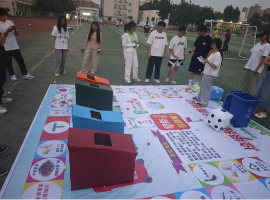 活动包含“垃圾分类知识线上答题”“垃圾分类趣味游戏”两部分内容。线上答题环节中,同学们结合所学相关专业课程设置题目,考核的知识点涵盖生活垃圾的来源、分类、处理处置方法及资源化利用途径等。答题时,学生通过微信小程序从题库中随机抽取10道题目作答,线上答题环节的平均正确率达到90%以上,展现了同学们扎实的专业功底。垃圾分类趣味游戏环节设置红、黄、蓝、绿四种颜色的垃圾桶,分别对应有害垃圾、其他垃圾、可回收垃圾和厨余垃圾。活动主持者随机说出一种垃圾,参与者需要快速判断出垃圾的类型,并将该垃圾所对应颜色的小球投掷到相应的垃圾桶中。活动现场热闹非凡、欢声笑语不断,吸引了大量学生参加。