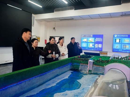 参观过程中,母西杰详细介绍了校区发展现状、办学理念、建筑特色、党建工作等情况。张翼介绍了水文化育人、科普基地建设、社会服务等方面情况。